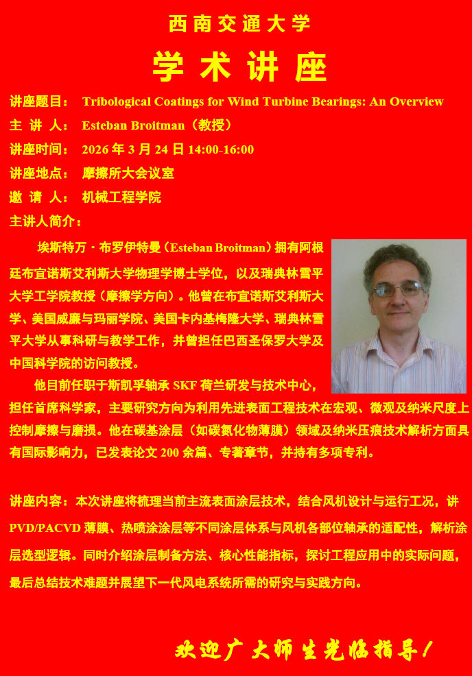 讲座地点:九里校区摩擦所大会议室